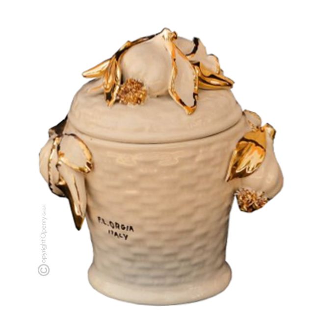 BARATTOLO CON COPERCHIO Decorazione da tavolo centrotavola ceramica artistica stile Barocco colore oro 24k