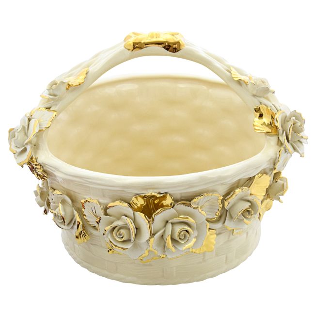 Il CENTROTAVOLA CESTO é una creazione artistica in ceramica in stile barocco, con doratura autentica in oro 24k.