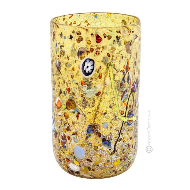 VASO ARLECCHINO autentico vetro soffiato di Murano con Murrine e foglia argento 925 fatto a mano Made Italy